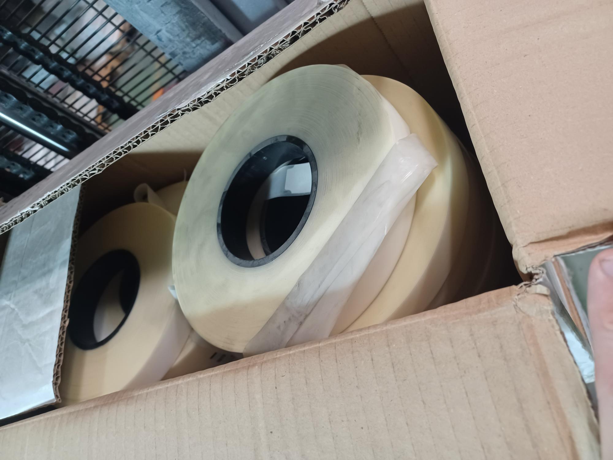 Cinta de poliuretano transparente de 22 mm de ancho para impermeabilizar costuras en ropa profesional. Aplicación por termosellado Disponibilidad de 47 mil metros. Rollos de 200 m. Precio: 0,14€/m Generación de resto de stock puntual
